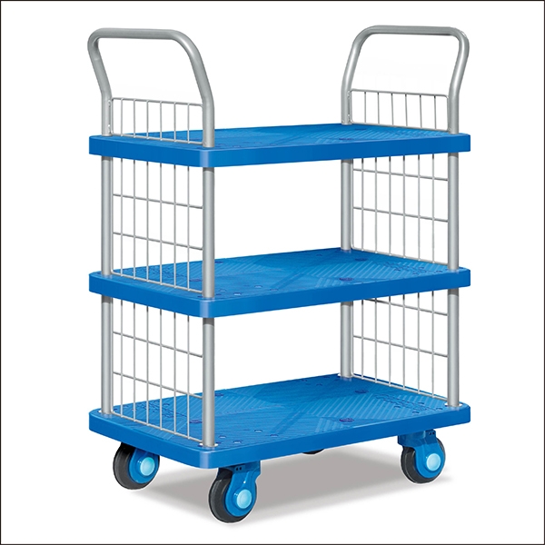 三層超靜書(shu) 車由塑料車板、粉末噴塗扶手(可折倒、固定)、行走輕便及超安靜腳輪(尼龍支架、鐵板支架)等組成。